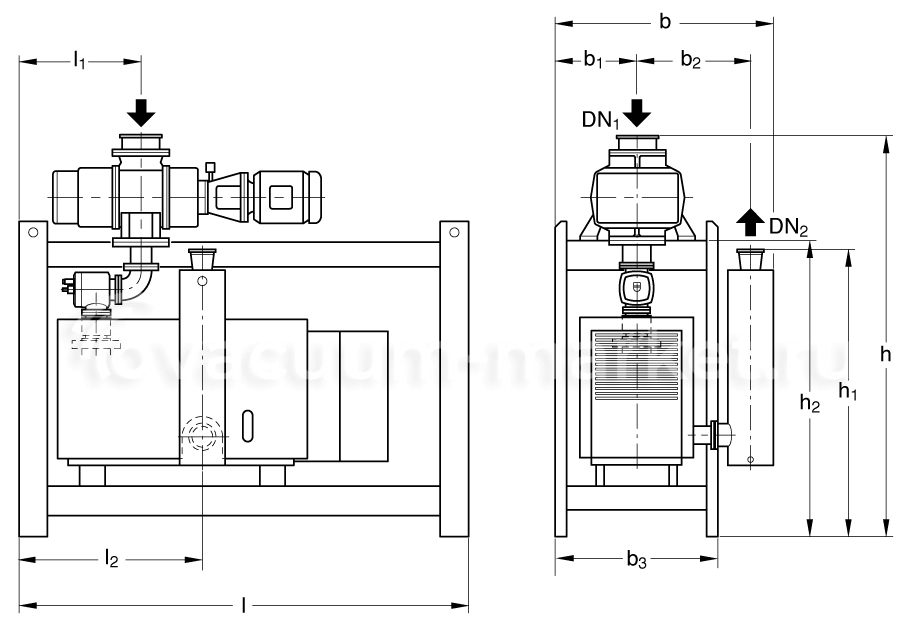 Габаритный чертёж форвакуумная двухступенчатая система Leybold RUTA RA 5001 / SP 630 / G