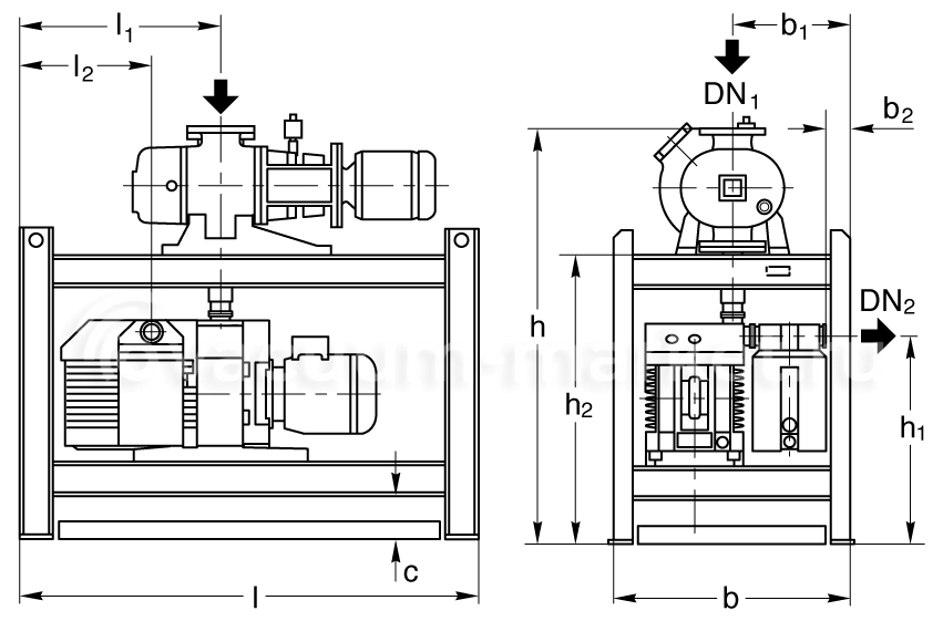 Габаритный чертёж форвакуумная двухступенчатая система Leybold RUTA WAU 1001 / D 65 B / G