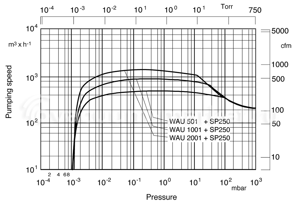 График производительности форвакуумная двухступенчатая система Leybold RUTA WAU 2001 / SP 630 F / G