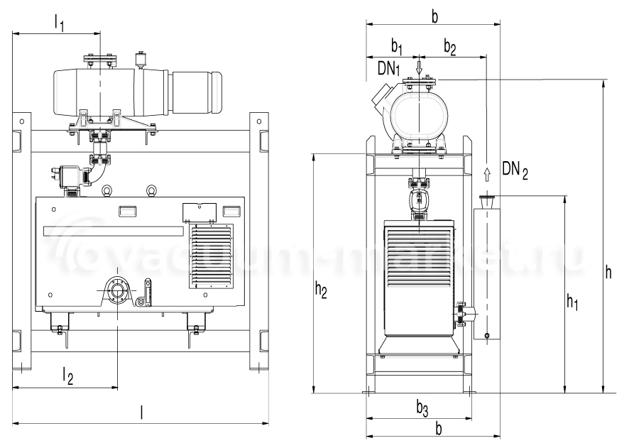 Габаритный чертёж форвакуумная двухступенчатая система Leybold RUTA WAU 2001 / SP 630 F / G