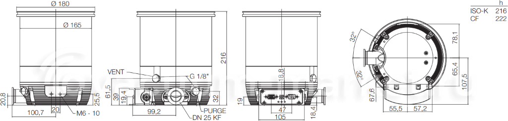 Габаритный чертёж турбомолекулярный насос Leybold TURBOVAC T 450 i/iX