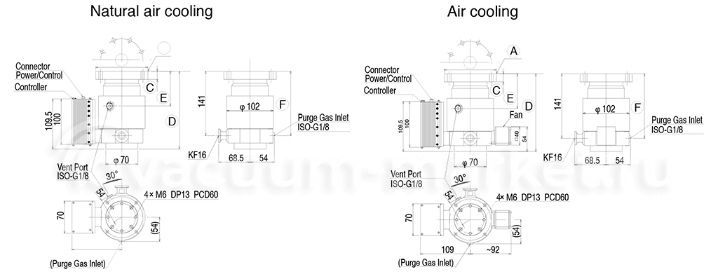 Габаритный чертёж турбомолекулярный насос OSAKA TG60F