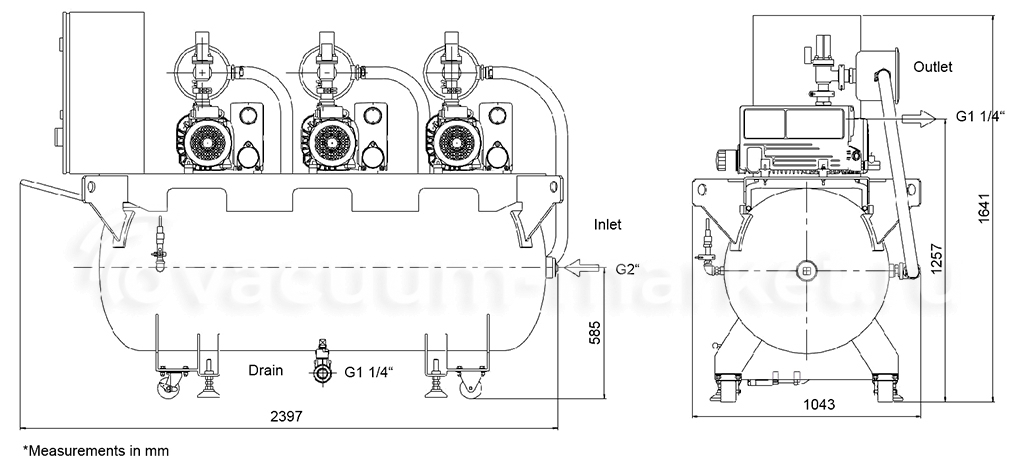 Габаритный чертёж вакуумная станция Leybold CVS 1000 - 3 x SV 65B